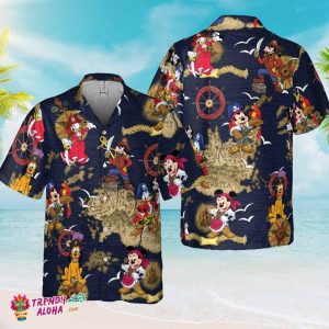 Disney Pirates Mickey Mouse Treasure Map Summer Holiday Family KLA Hawaiian Beach Shirt