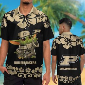 NCAA Purdue Boilermakers Baby Yoda Gold Black Hawaiian Shirt