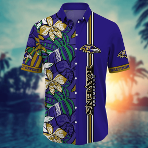 Baltimore Ravens Hawaiian Short Sleeve Tropical Shirt Button Up