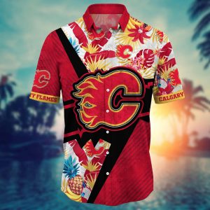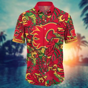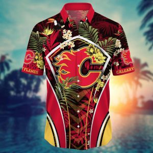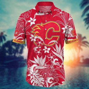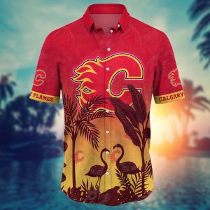 Calgary Flames NHL Palm Tree Pattern Hawaii Shirt For Sports Fans Unisex Sport Hawaii Shirt