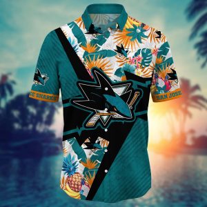 San Jose Sharks Short Sleeve Button Up Tropical Hawaiian Shirt