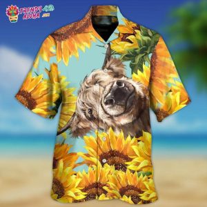 Highland Cattle Lovers Sun Flower Trendy Hawaiian Shirt, Cow Trendy Hawaiian Shirt For Summer Gifts