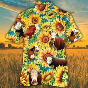 Hereford Cattle Lovers Sun Flower Trendy Hawaiian Shirt, Cow Trendy Hawaiian Shirt For Summer Gifts