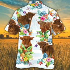 Highland Blue Hibiscus Trendy Hawaiian Shirt, Farm Cow Trendy Hawaiian Shirt For Men And Women