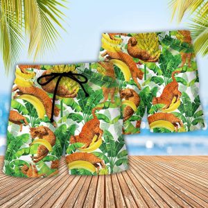 Cat Funny And Jumping Bananas Trendy KLA Hawaiian Beach Shorts