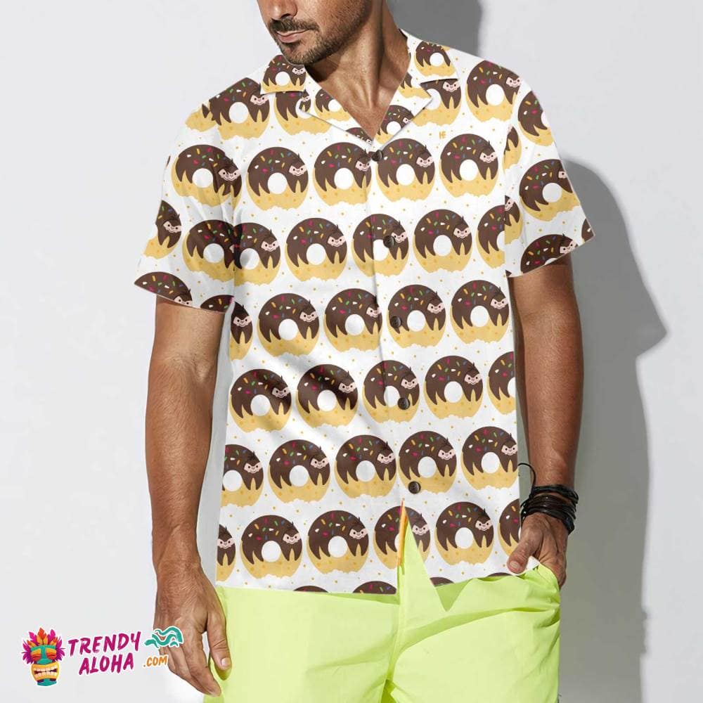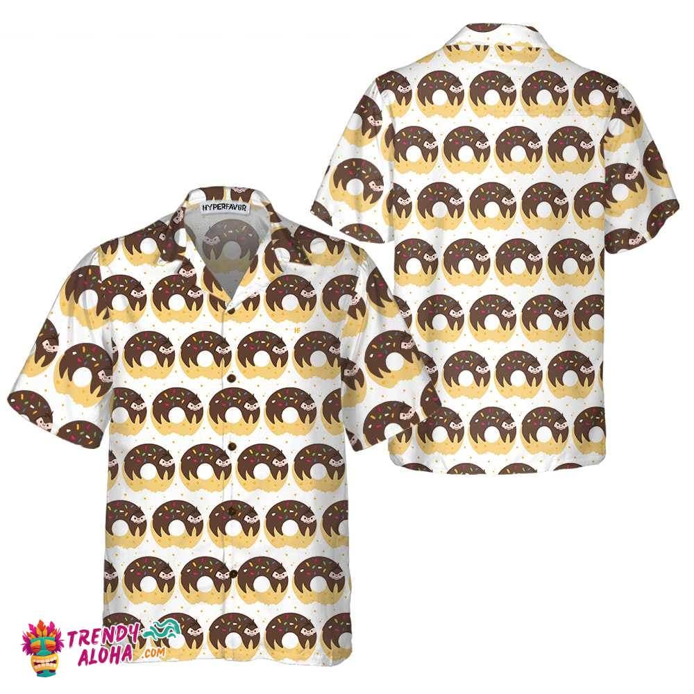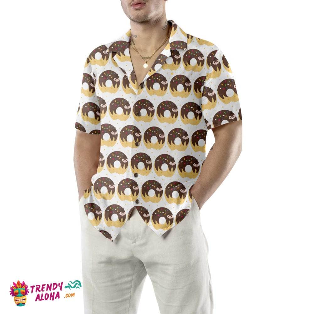 Adorable Cartoon Sloth On Donut Hawaiian Shirt, Funny Sloth Shirt For Adults, Sloth Themed Gift Idea