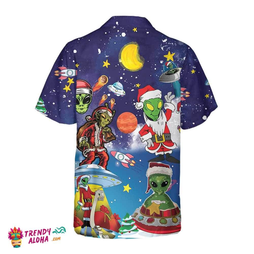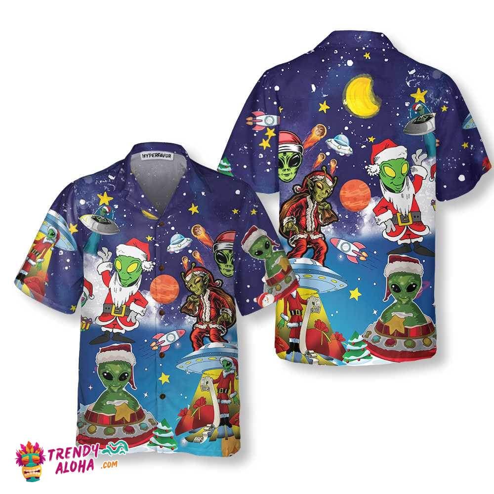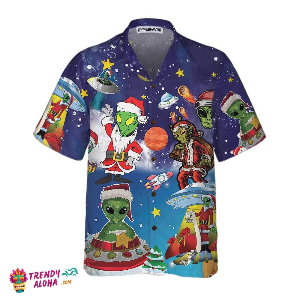 Aliens In Santa Costume Hawaiian Shirt, Funny Christmas Shirt For Men