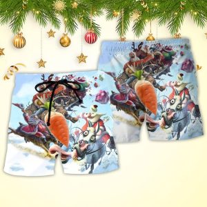 Christmas Funny Santa Claus Up On Rooftop Art Style Trendy KLA Hawaiian Beach Shorts