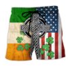 American Flag Celtic Cross Irish Saint Patricks Day Hawaiian Shirt Beach Short