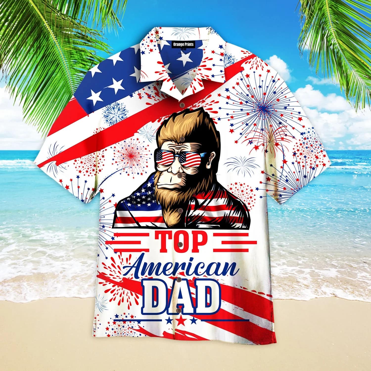 American Top Dad Bigfoot 4Th Of July Trendy Hawaiian Shirt For