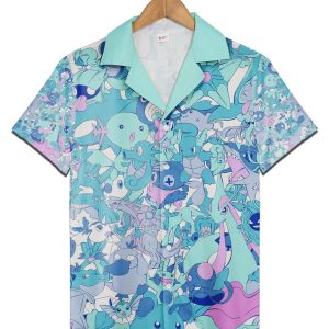 Light Blue Pokemon Characters Hawaiian Shirt Cute Colorful Tropical Shirt Summer Vacation Unisex Fit