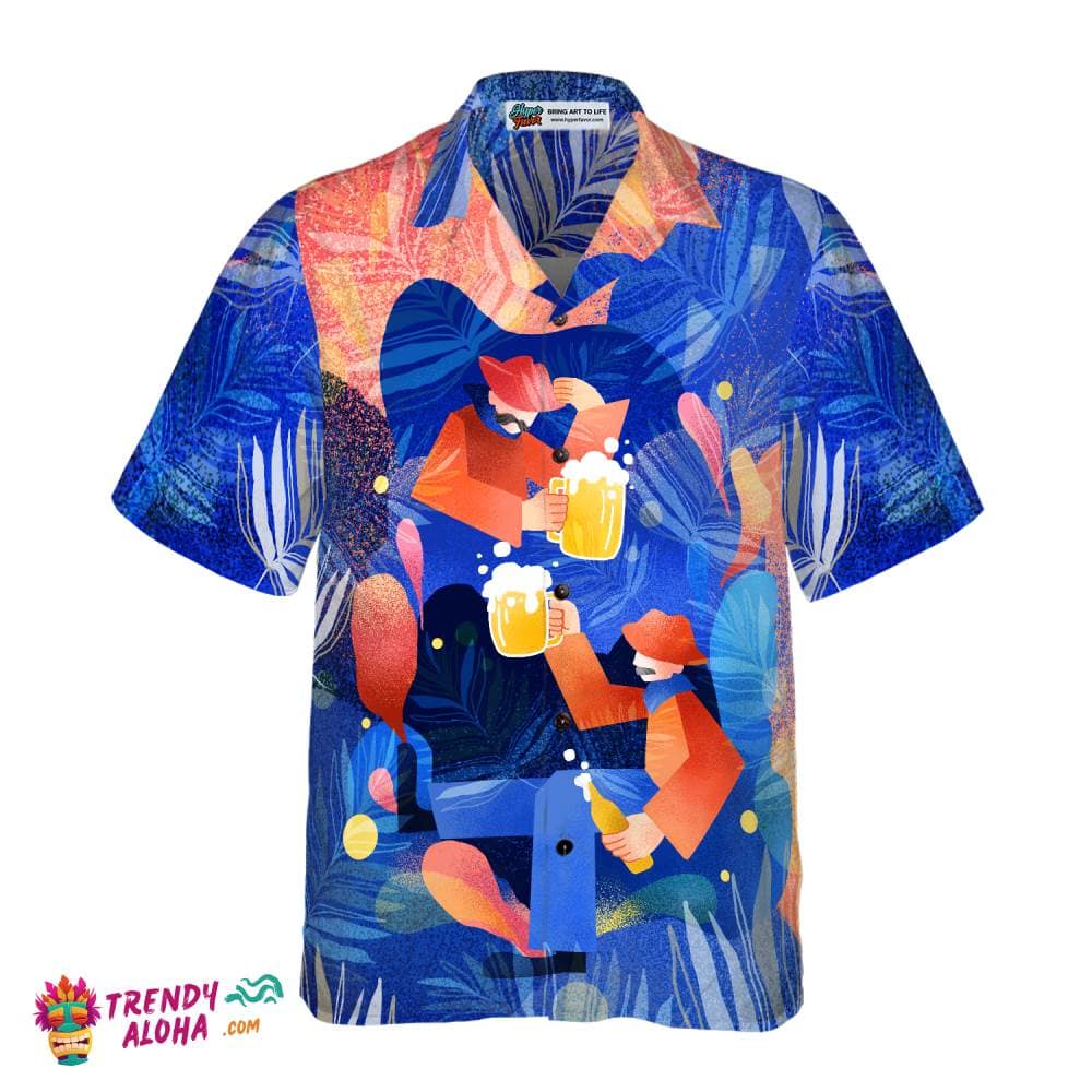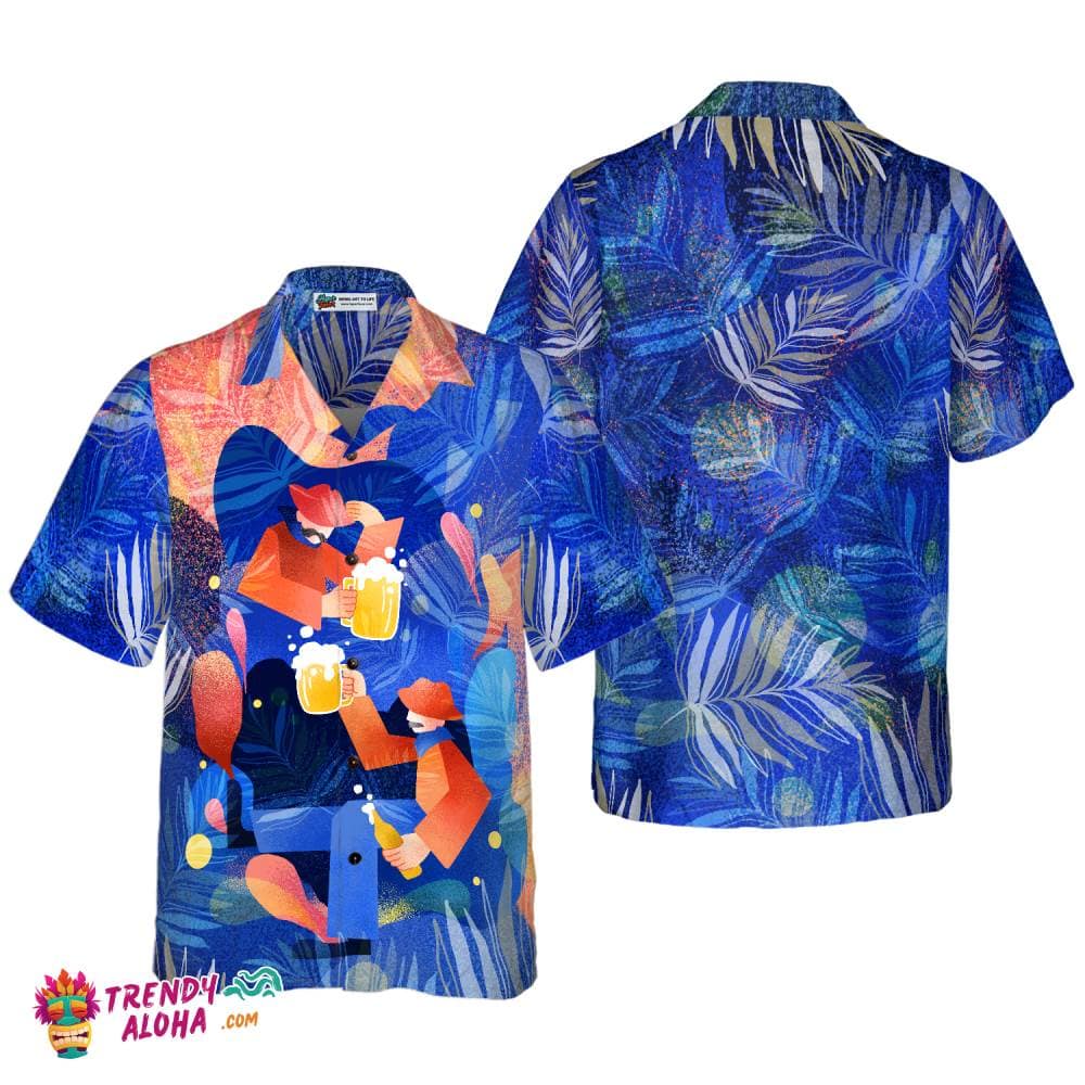 Artistic Beer Party Hawaiian Shirt For Men, Beer Lovers KLA Shirts, Blue Tropical Shirt
