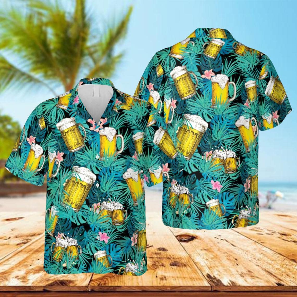 Artistic Beer Party Hawaiian Shirt For Men, Beer Lovers KLA Shirts, Blue Tropical Shirt