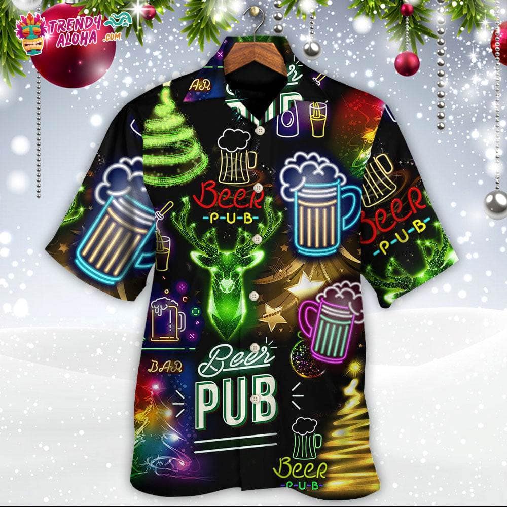 Beer Christmas Neon Art Drinking Hawaiian Shirt – Trendy KLA