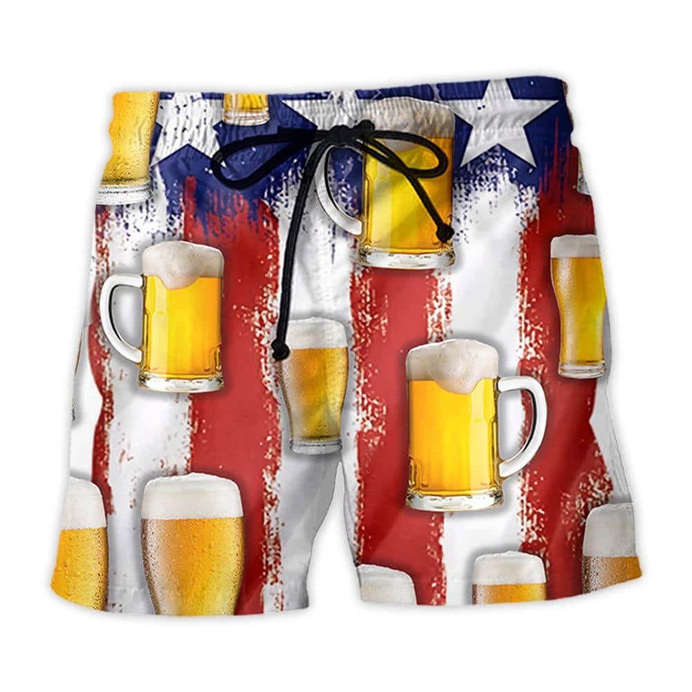 Beer Happy Independence Day America Basic Trendy KLA Hawaiian Beach Shorts