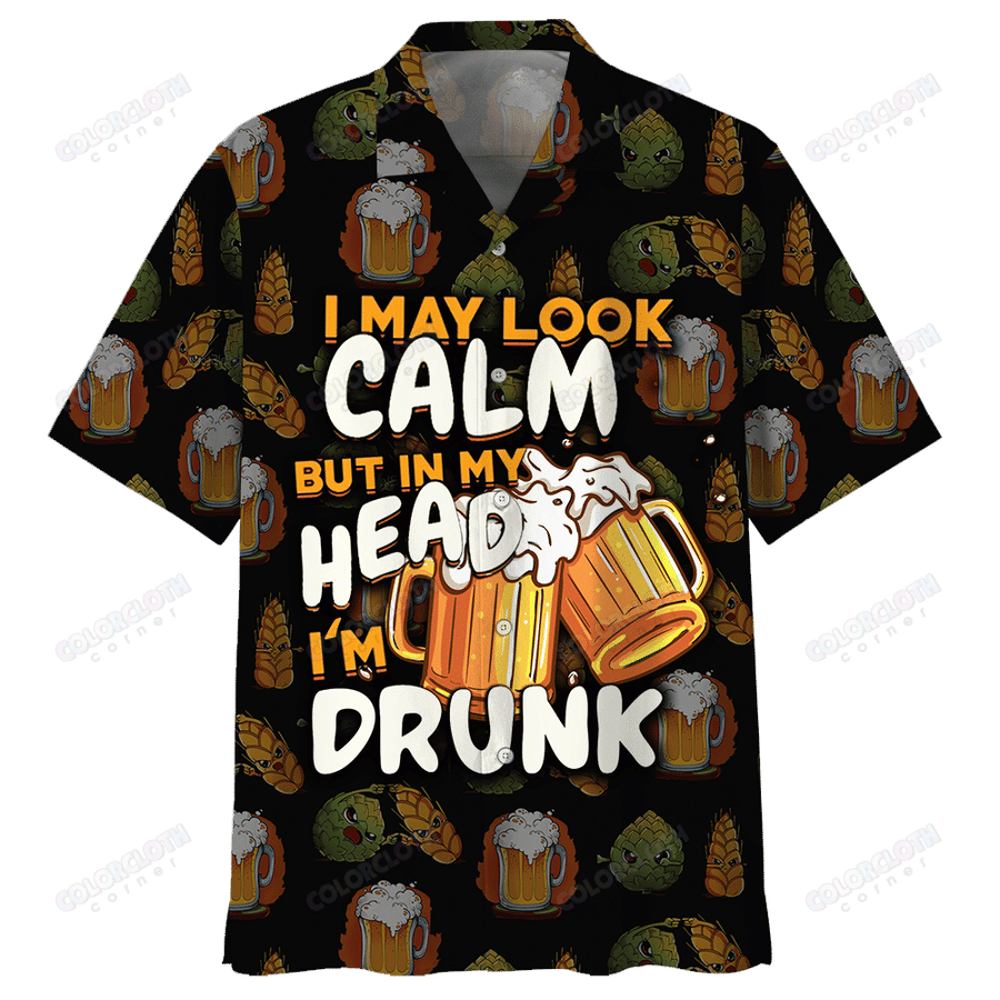 Beer Hawaii Shirt I May Look Calm But In My Head I’M Drunk Beer Cups Pattern Black Hawaiian KLA Shirt