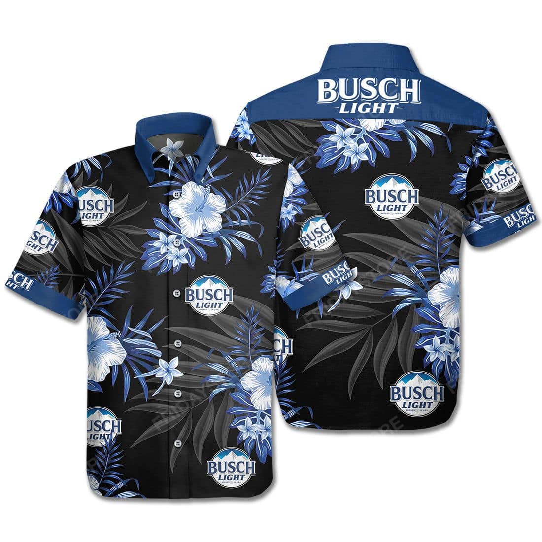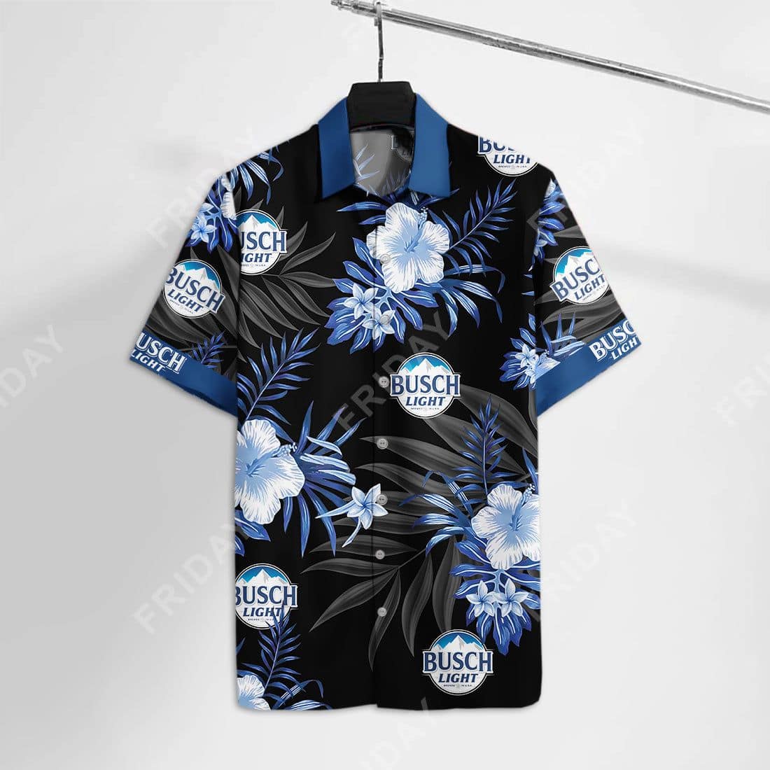 You’re viewing Beer Hawaiian Shirt Busch Light Logo Hibiscus Flower Pattern Blue Black Hawaii KLA Shirt.
