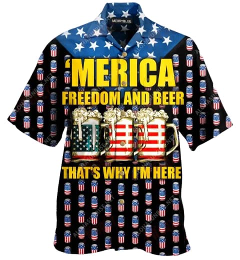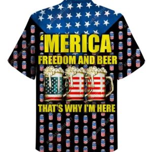 Beer Trendy Hawaiian Shirt American Flag Beer Cups Merica Freedom And Beer That’s Why I’m Here Black Hawaii Shirt Beer KLA Shirt