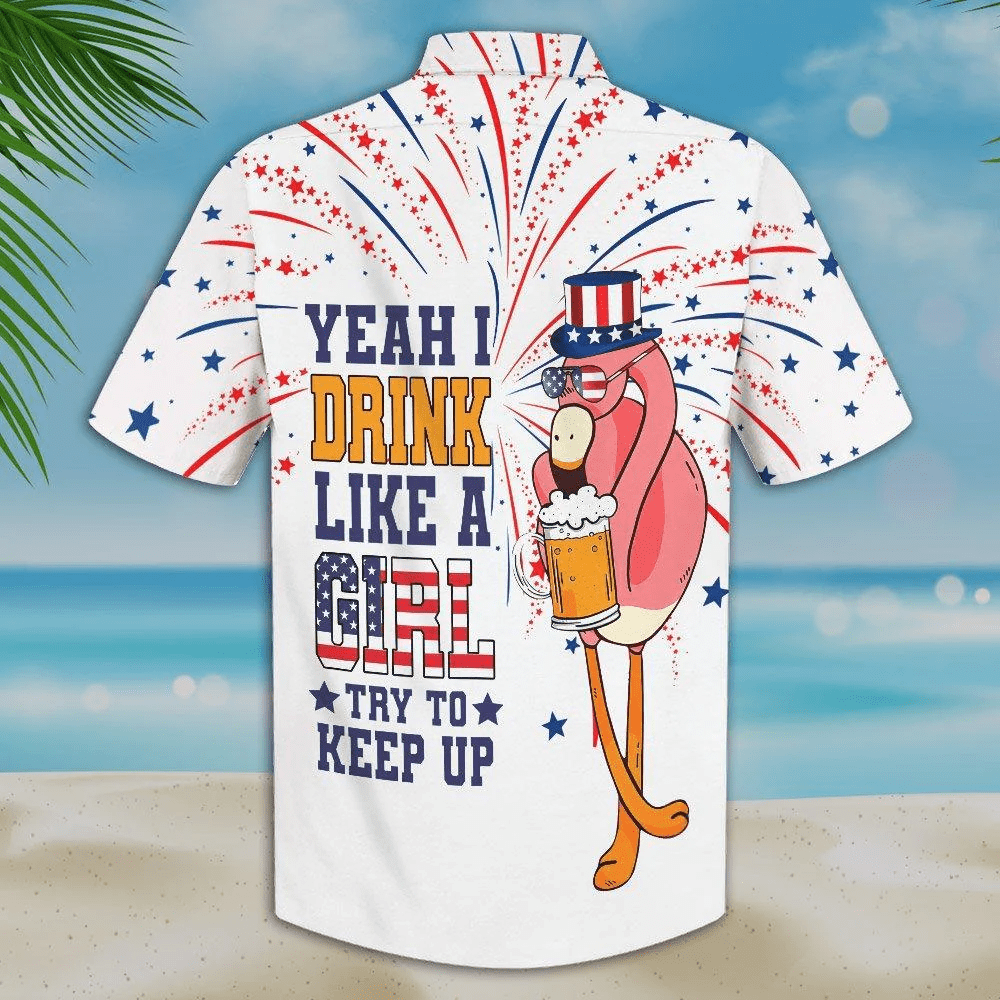 Beer Trendy Hawaiian Shirt Flamingo Beer Yeah I Drink Like A Girl Try To Keep Up White Hawaii Shirt Beer KLA Shirt