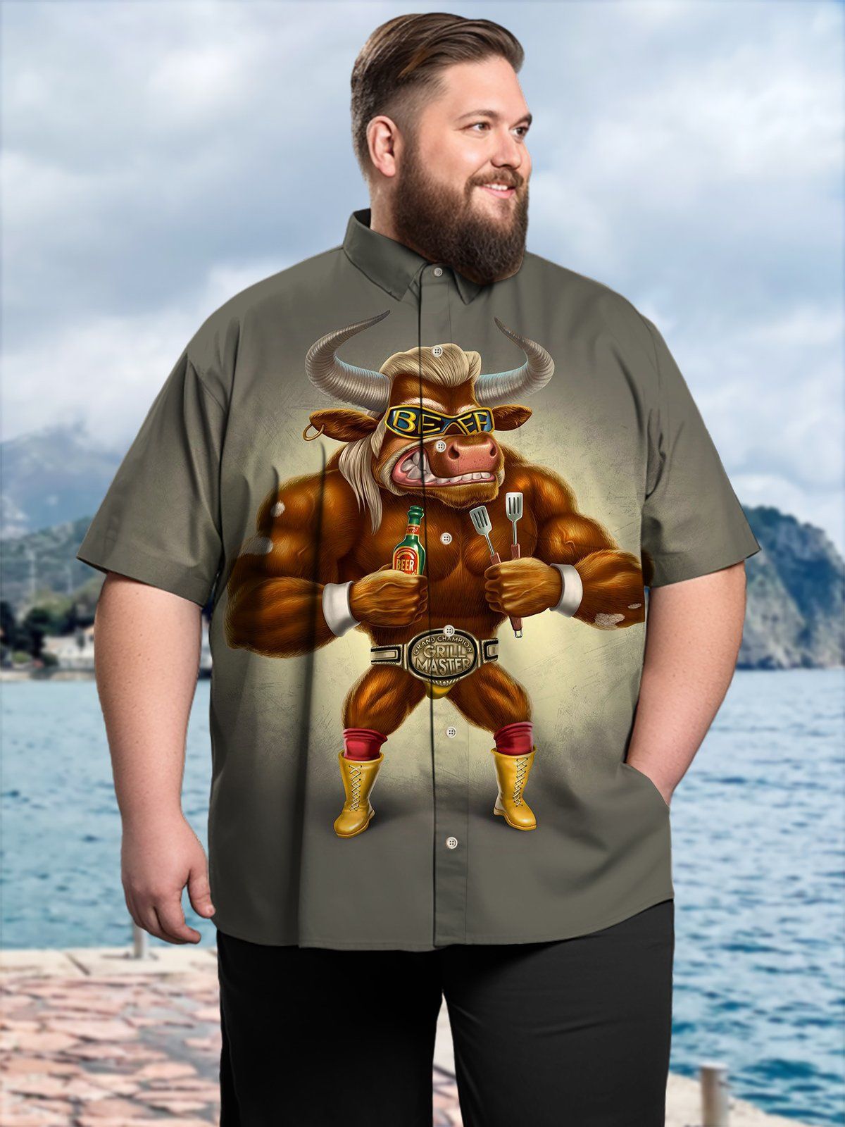Big & Tall Retro Muscle Food Cow Hawaiian Shirt
