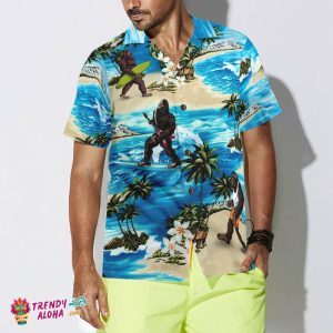You’re viewing Bigfoot Aioha Beach Bigfoot Hawaiian Shirt, Palm Tree And Flower Blue Ocean Bigfoot Surfing Shirt For Men.