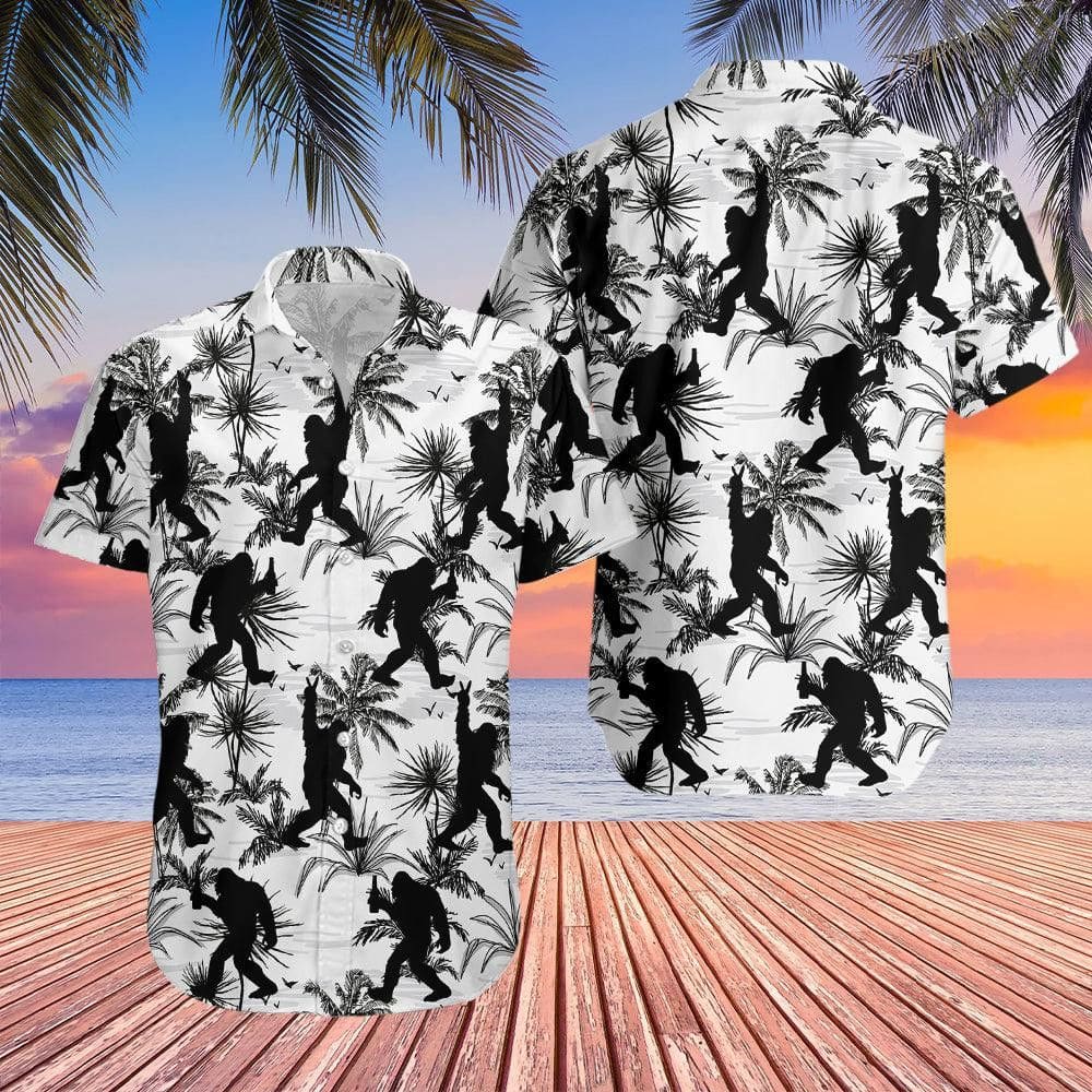 You’re viewing Bigfoot Black And White Trendy Hawaiian Shirt.