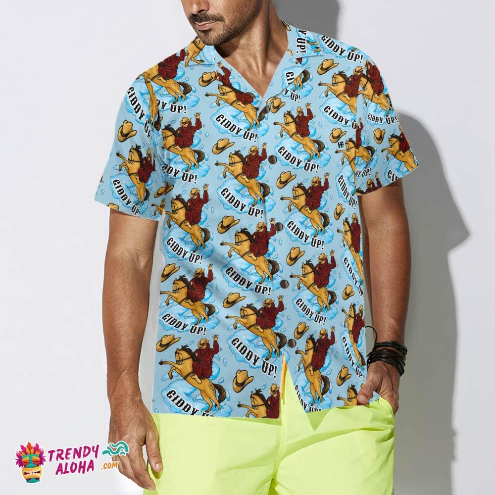 You’re viewing Bigfoot Cowboy Giddy Up Bigfoot Hawaiian Shirt, Sky Blue Vintage Rodeo Horse Riding Bigfoot Shirt For Men.