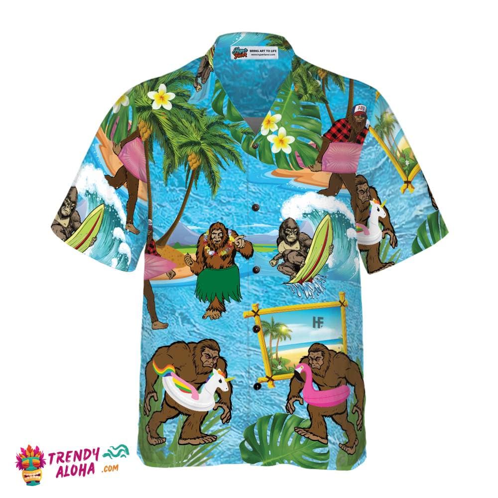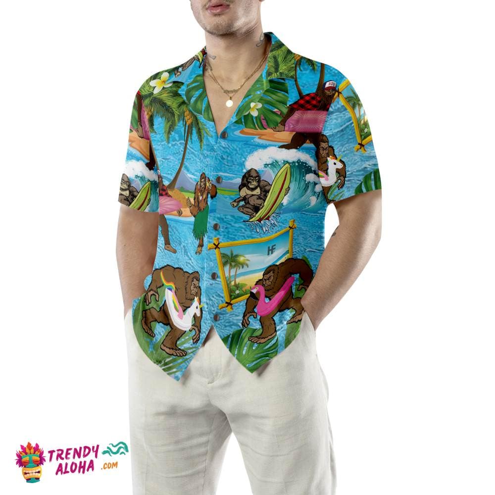 You’re viewing Bigfoot On The Beach Bigfoot Hawaiian Shirt, Tropical KLA Wave Surfing Bigfoot Shirt For Men.