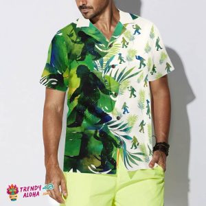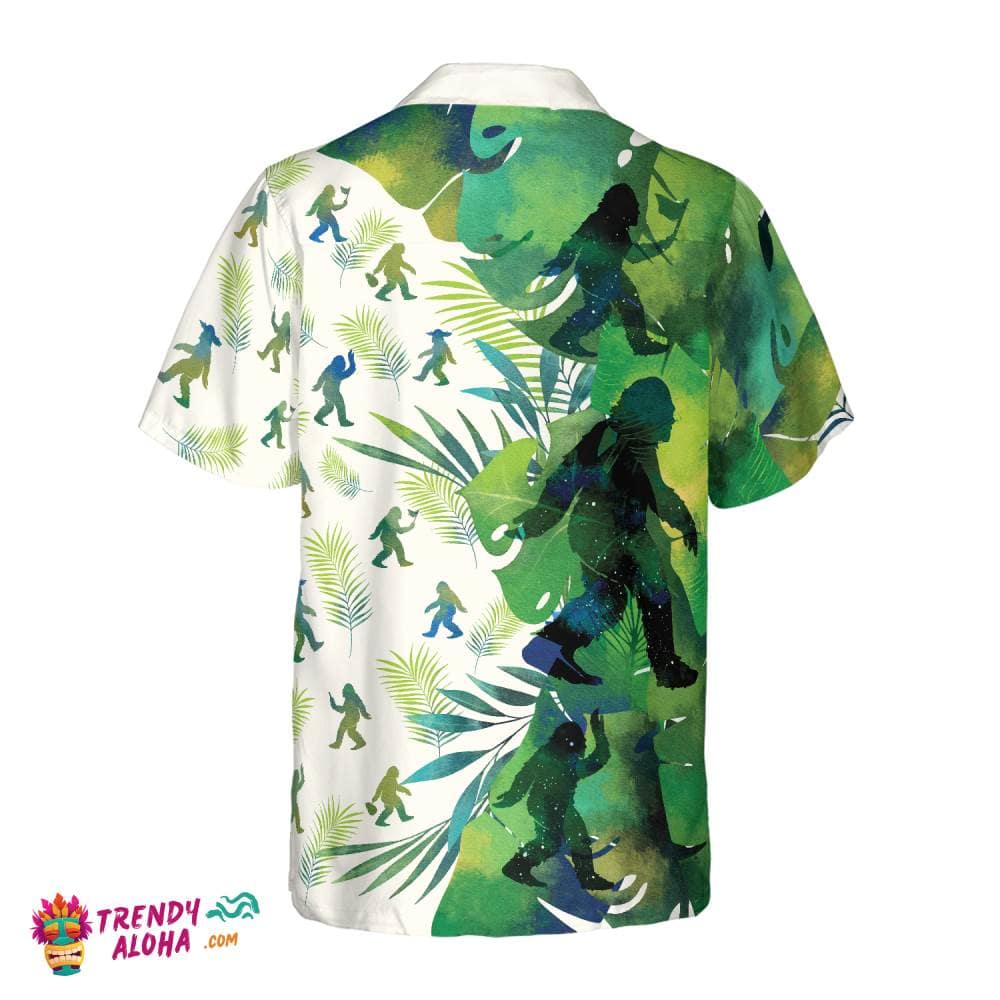 You’re viewing Bigfoot Silhouettes In Tropical Hawaiian Shirts For Men, Green Sasquatch Shirts.