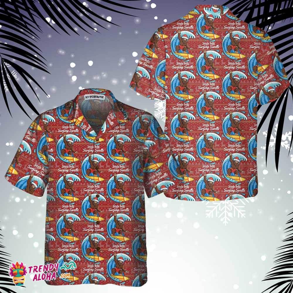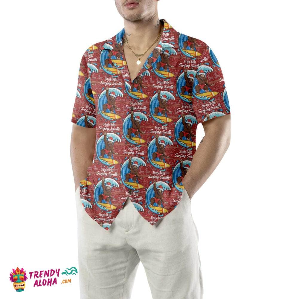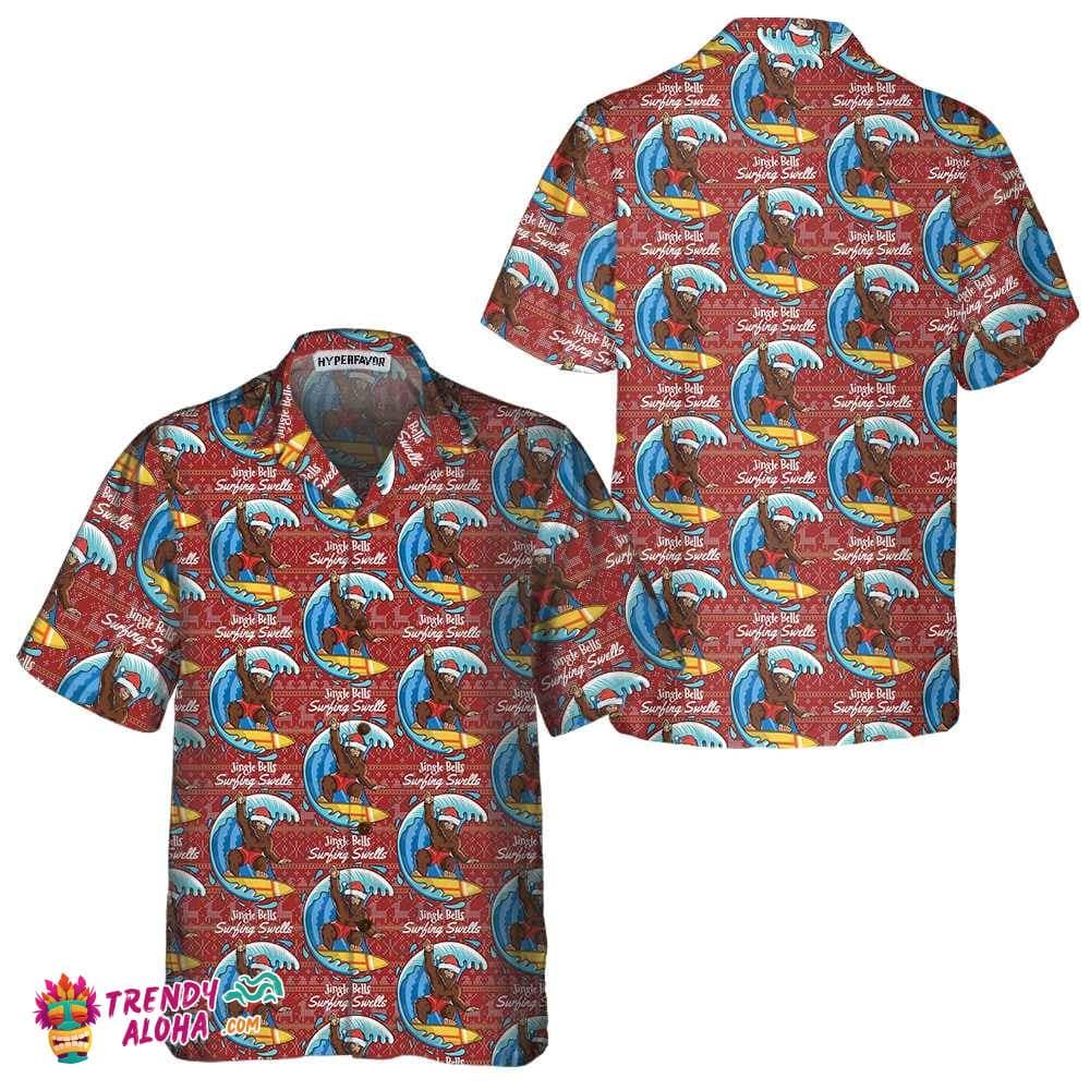 Bigfoot Surfing Christmas Hawaiian Shirt, Funny Christmas Bigfoot Shirt, Best Xmas Gift Idea