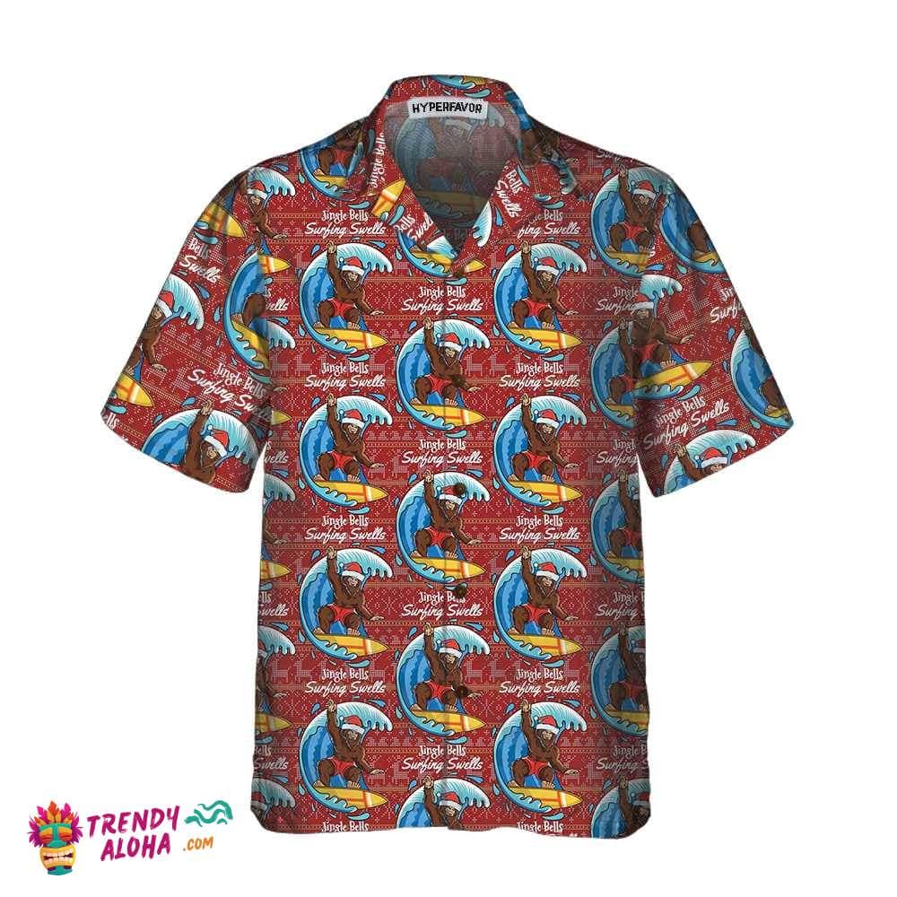 Bigfoot Surfing Christmas Hawaiian Shirt, Funny Christmas Bigfoot Shirt, Best Xmas Gift Idea