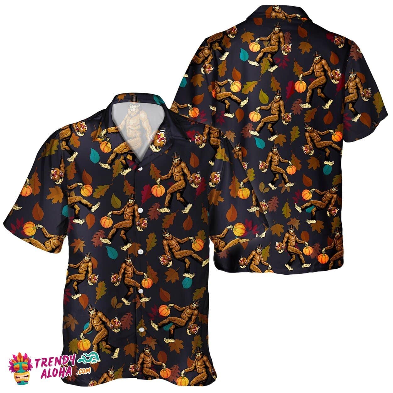You’re viewing Bigfoot Turkey Autumn Pumpkin Unisex Hawaiian Shirt for Fall Season.