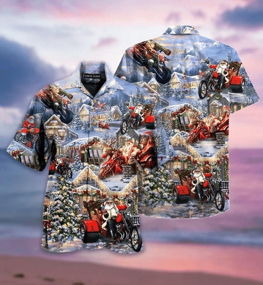 Santa On Motorcycle Hawaiian Shirt, Funny Santa Claus Shirt, Best Gift For Christmas