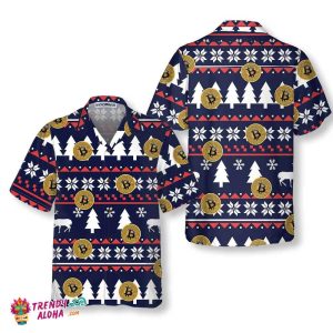 Bitcoin Ugly Christmas Pattern Hawaiian Shirt, Funny Christmas Hawaiian Shirt For Men