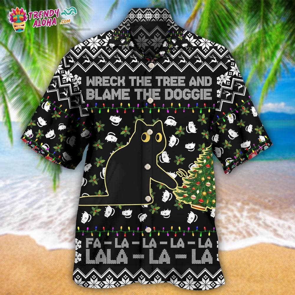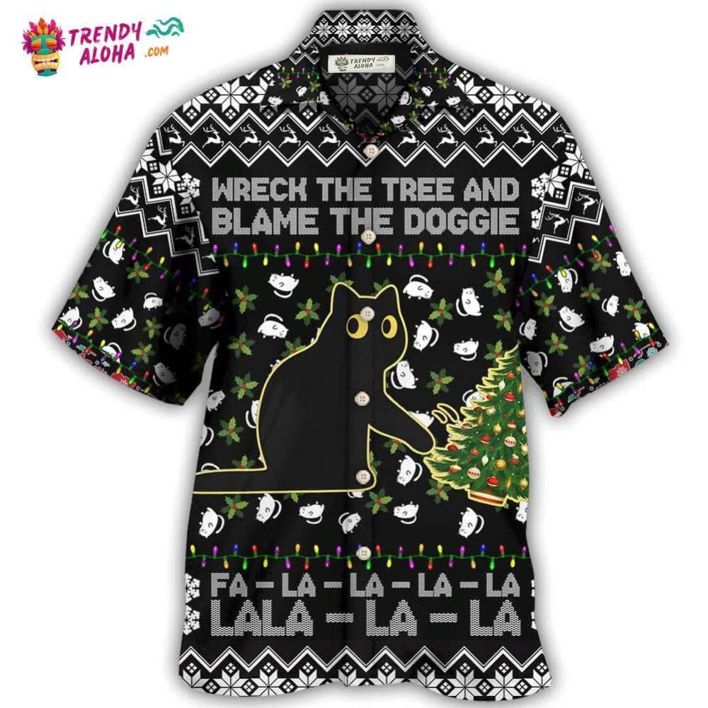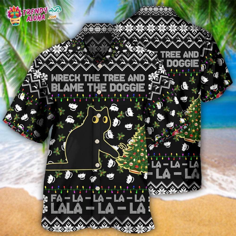Black Cat Wreck The Tree And Blame The Doggie Merry Christmas La La Hawaiian Shirt – Trendy KLA