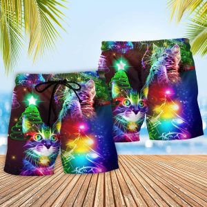Cats Meowy Mas Christmas Colorful Trendy KLA Hawaiian Beach Shorts