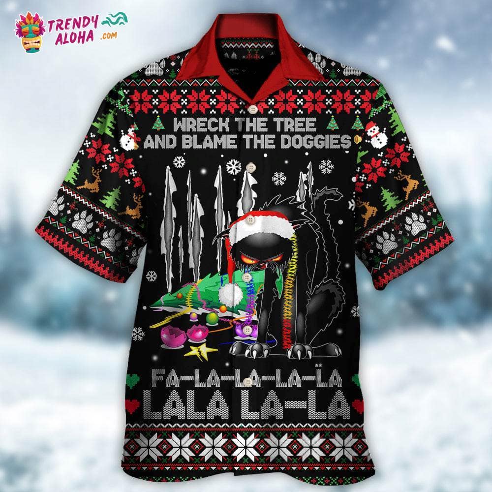Black Cat Wreck The Tree Funny Ugly Style Christmas Hawaiian Shirt – Trendy KLA