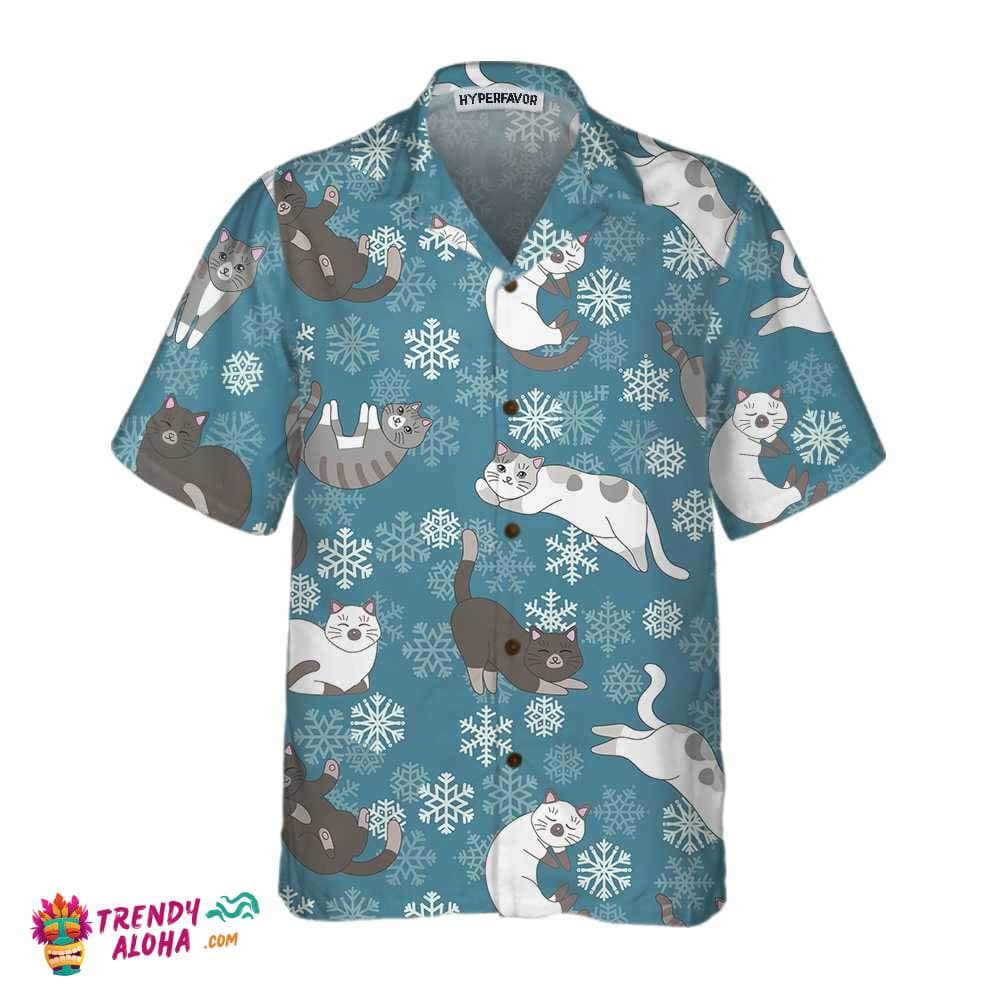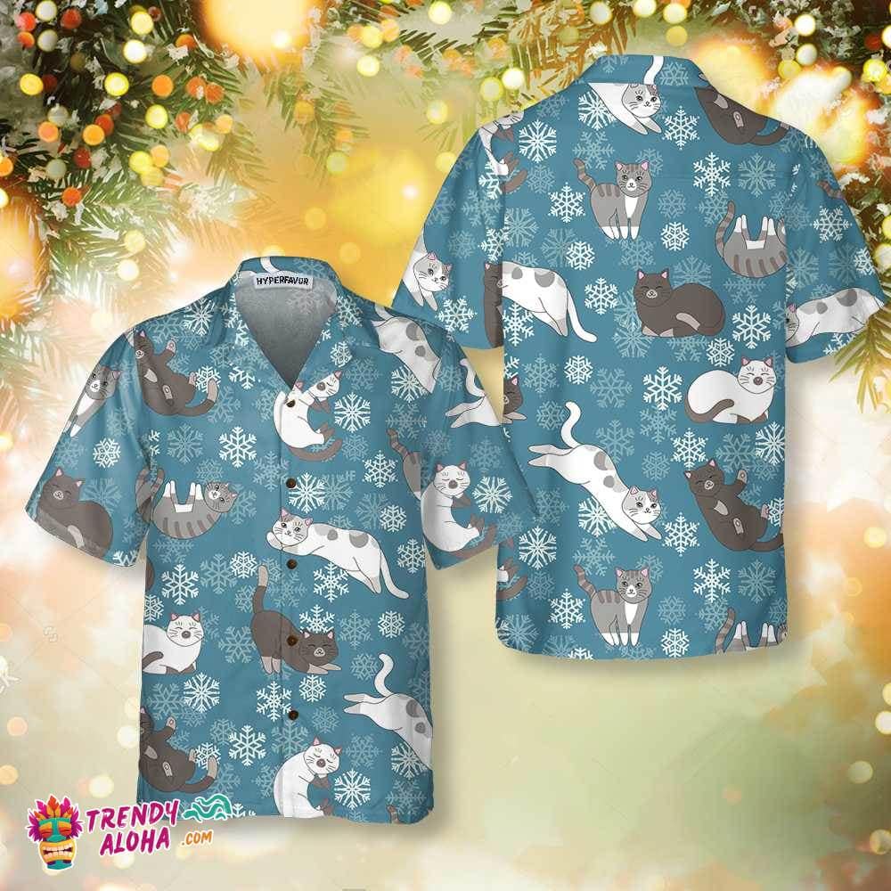 Blue Snowflakes Adorable Kittens Hawaiian Shirt, Funny Christmas KLA Shirt