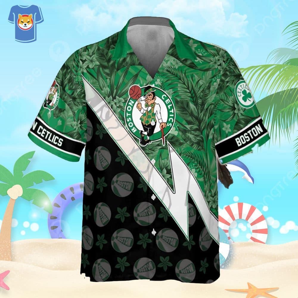Boston Celtics Tropical And Basketball Pattern Print Hawaiian Shirt