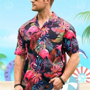 Be the first to review “Botanical Flamingo Print Casual Short Sleeve Hawaiian Shirt” Cancel reply
