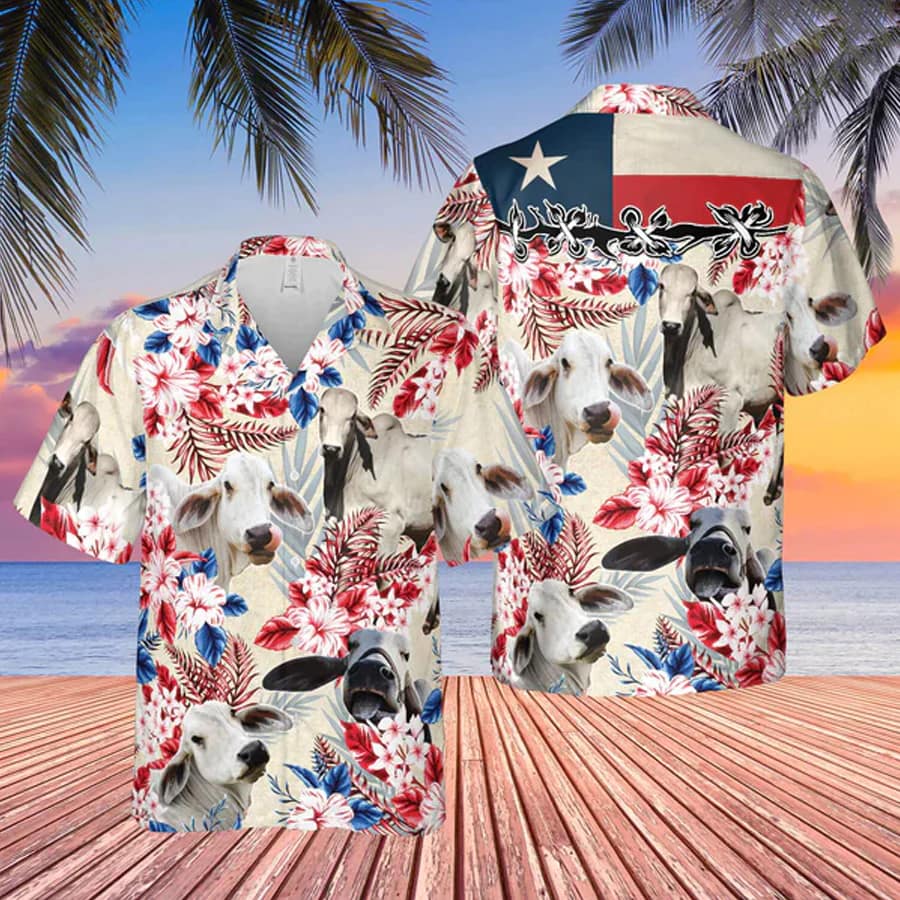 You’re viewing Brahman Cattle Texas Flag Trendy Hawaiian Shirt, Farm Cow Trendy Hawaiian Shirt For Men And Women.