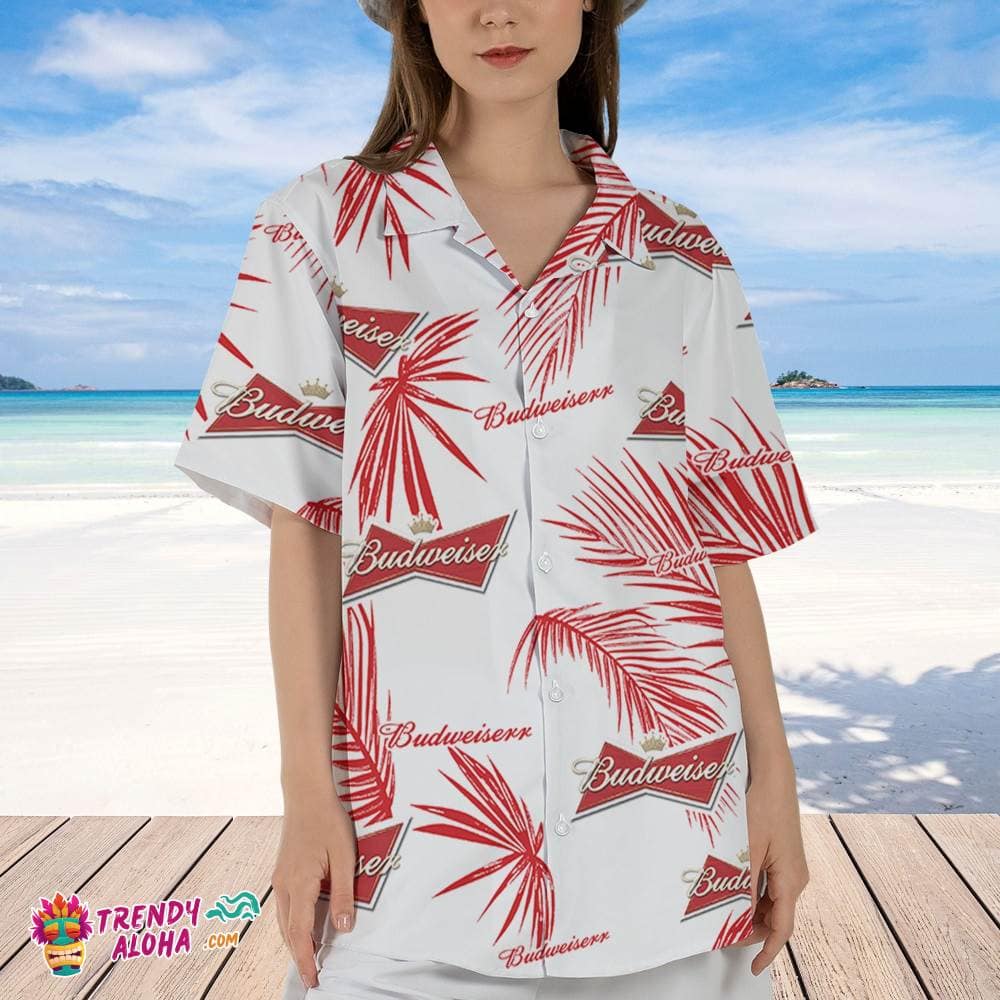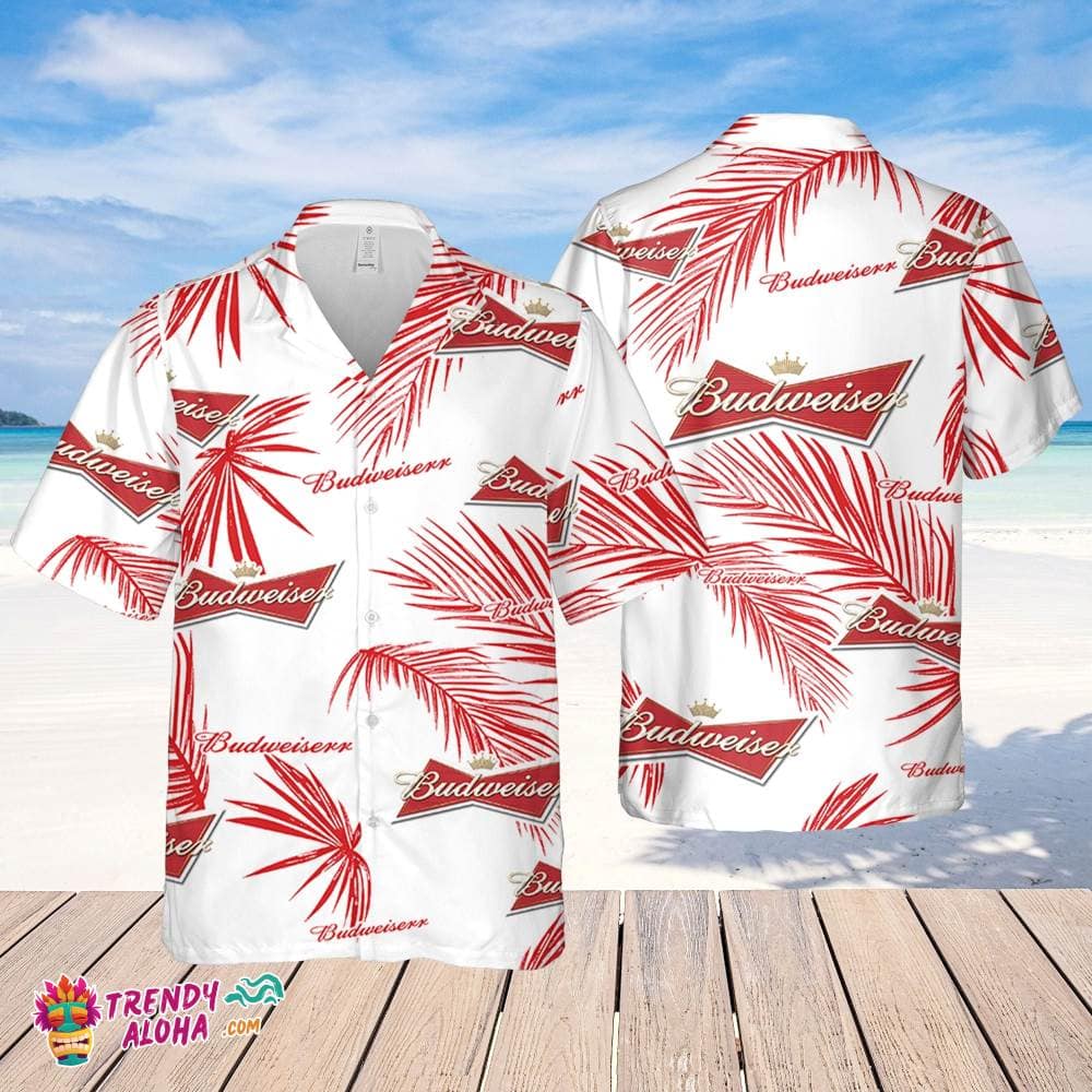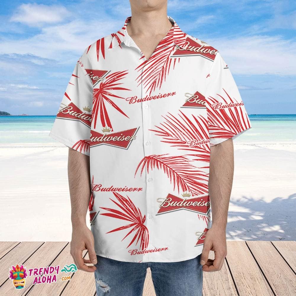 You’re viewing Budweiser Hawaiian Palm Leaves Pattern Shirt, Beer Summer Party Hawaiian Shirt, Budweiser Beer Shirt.
