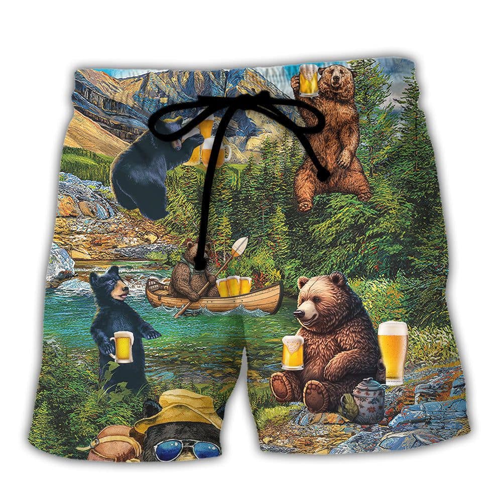 Camping Funny Bear Drinking Camping And Beer Why I’m Here Trendy KLA Hawaiian Beach Shorts