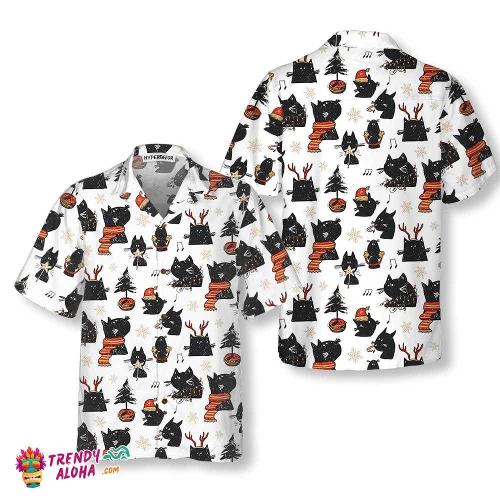 You’re viewing Cartoon Black Cat Merry Christmas Hawaiian Shirt, Funny Christmas Cat Shirt, Best Xmas Gift Idea.