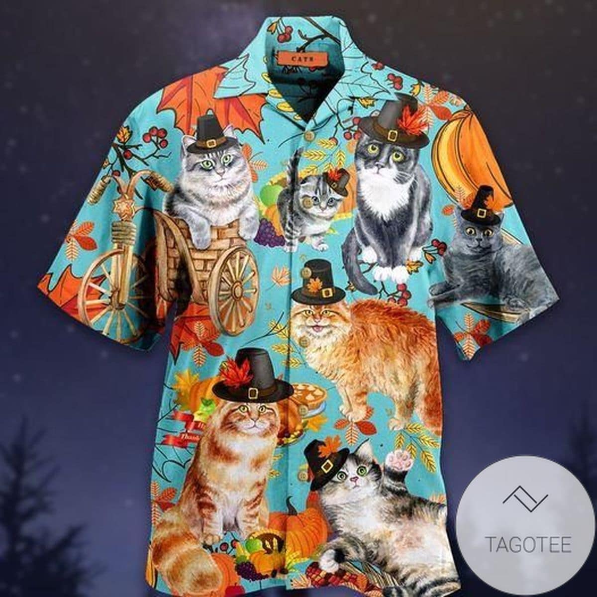 Cat Celebrating Thanksgiving Hawaiian Shirt Perfect Wear