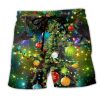 Black Cat Wreck The Tree And Blame The Doggie Merry Christmas La La Trendy KLA Hawaiian Beach Shorts