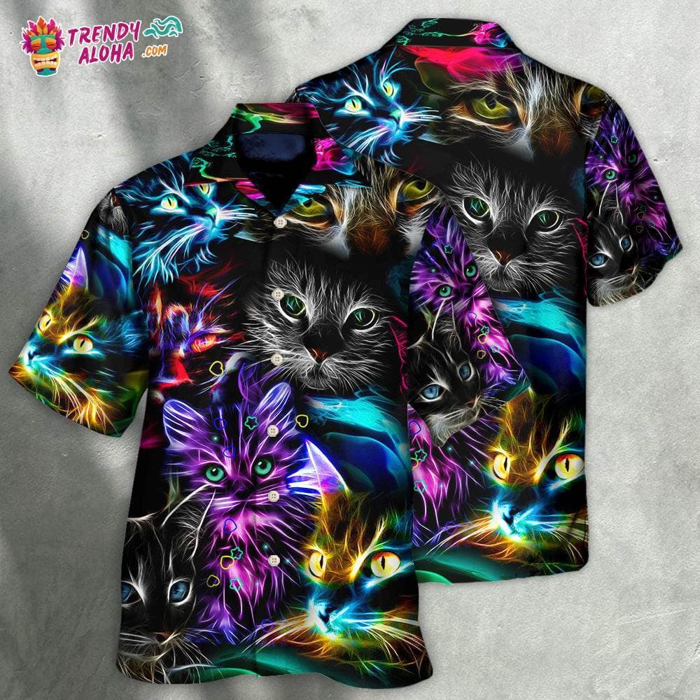 Cat Funny Neon Light Colorful Style Hawaiian Shirt – Trendy KLA