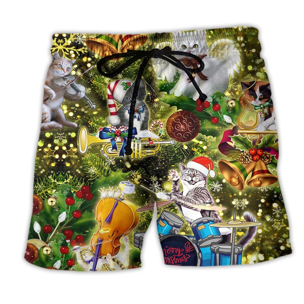 Cat Christmas Tree Merry Xmas Trendy KLA Hawaiian Beach Shorts
