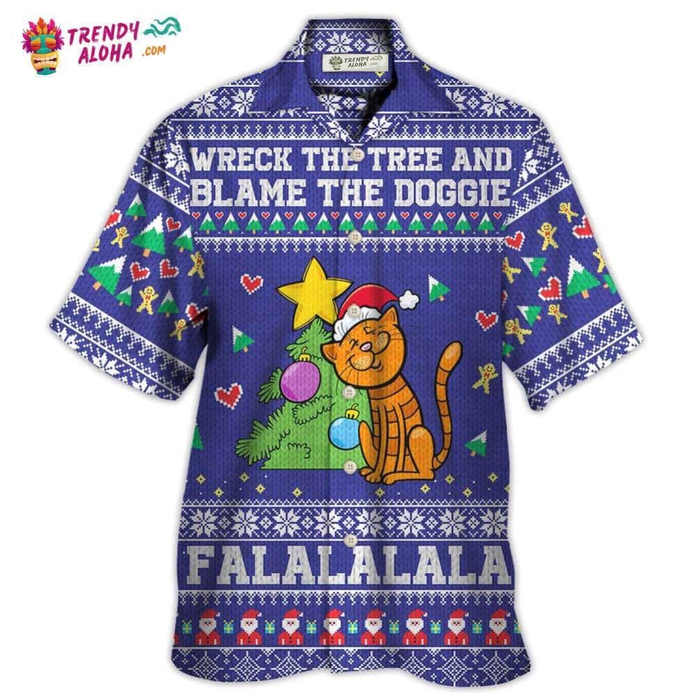Cat Wreck The Tree And Blame The Doggie Christmas Hawaiian Shirt – Trendy KLA