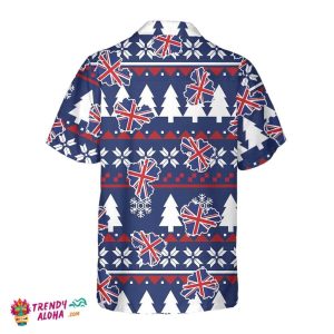 London Ugly Christmas Pattern Hawaiian Shirt, England Flag Christmas Shirt For Men